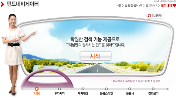 펀드네비게이터등의 서비스를 통해서 기존의 증권사들에서 제공하는 "투자자에 맞는 펀드 찾기" 기능을 제공하고 있는데요.